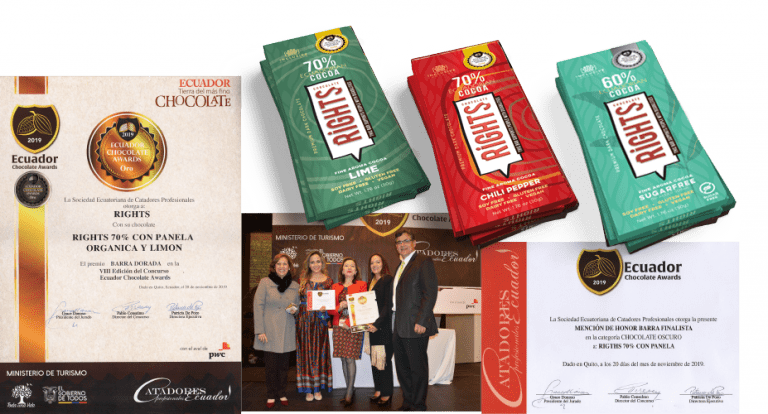 ¡Derechos es un chocolate excepcional! Desde el 2019 hemos sido galardonados con los máximos premios en el Ecuador Chocolate Awards; obteniendo 4 medallas de oro y 3 de plata. La inclusión genera productos de excelencia. Además, nuestras barras de 60%, 70%, 75%, 80%, 100% cacao son Súper Alimentos, todos hechos y pensados con maestría.